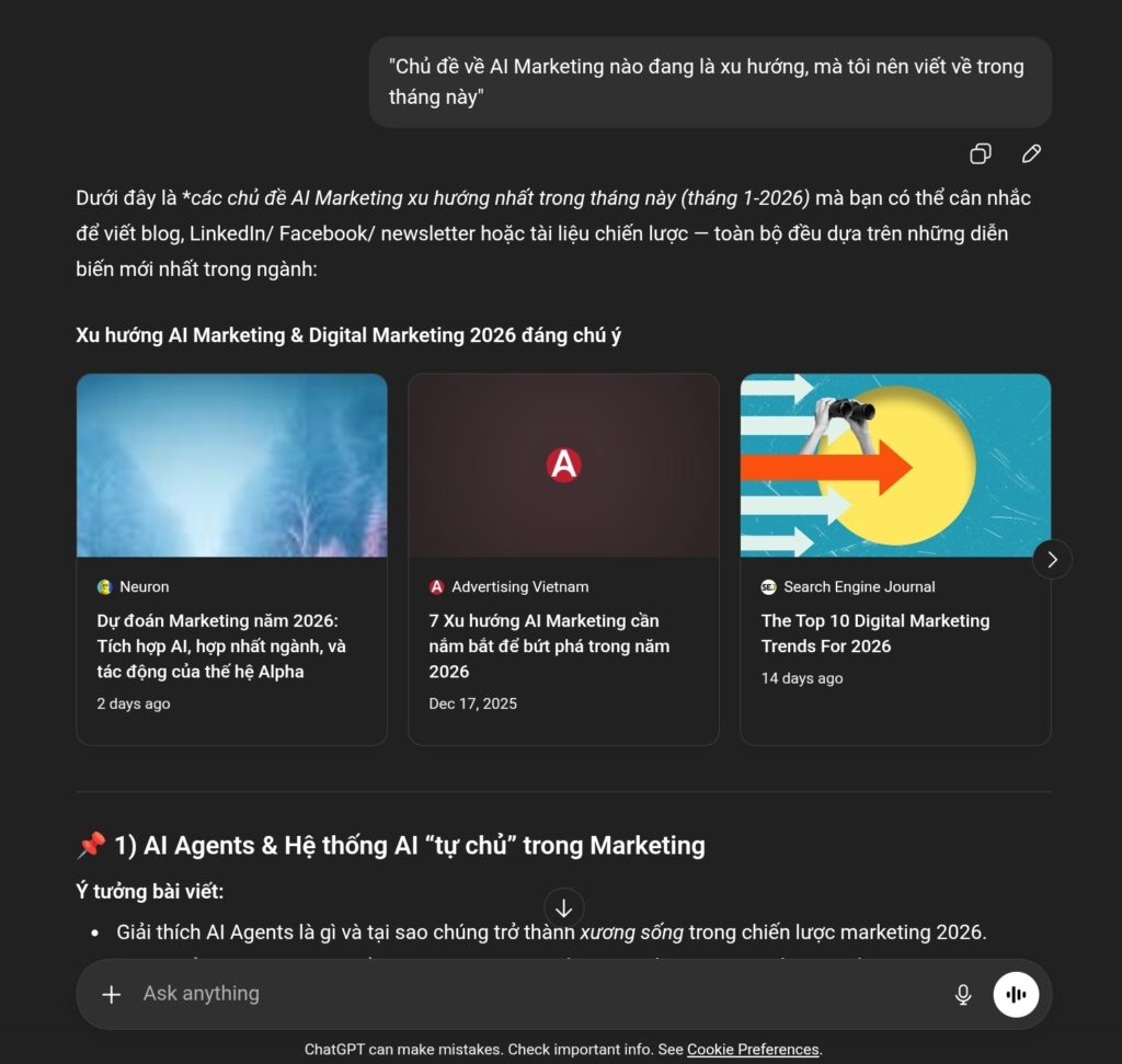 “Chủ đề về AI Marketing nào đang là xu hướng , mà tôi nên viết trong tháng này”