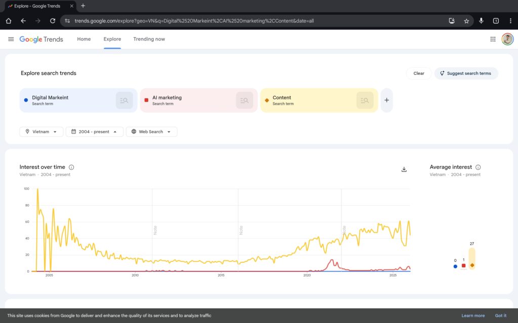 Google Trends sẽ là công cụ phù hợp để phá vỡ võng lặp này. Google Trends sẽ giúp bạn xác định cả những xu hướng dài hạn.